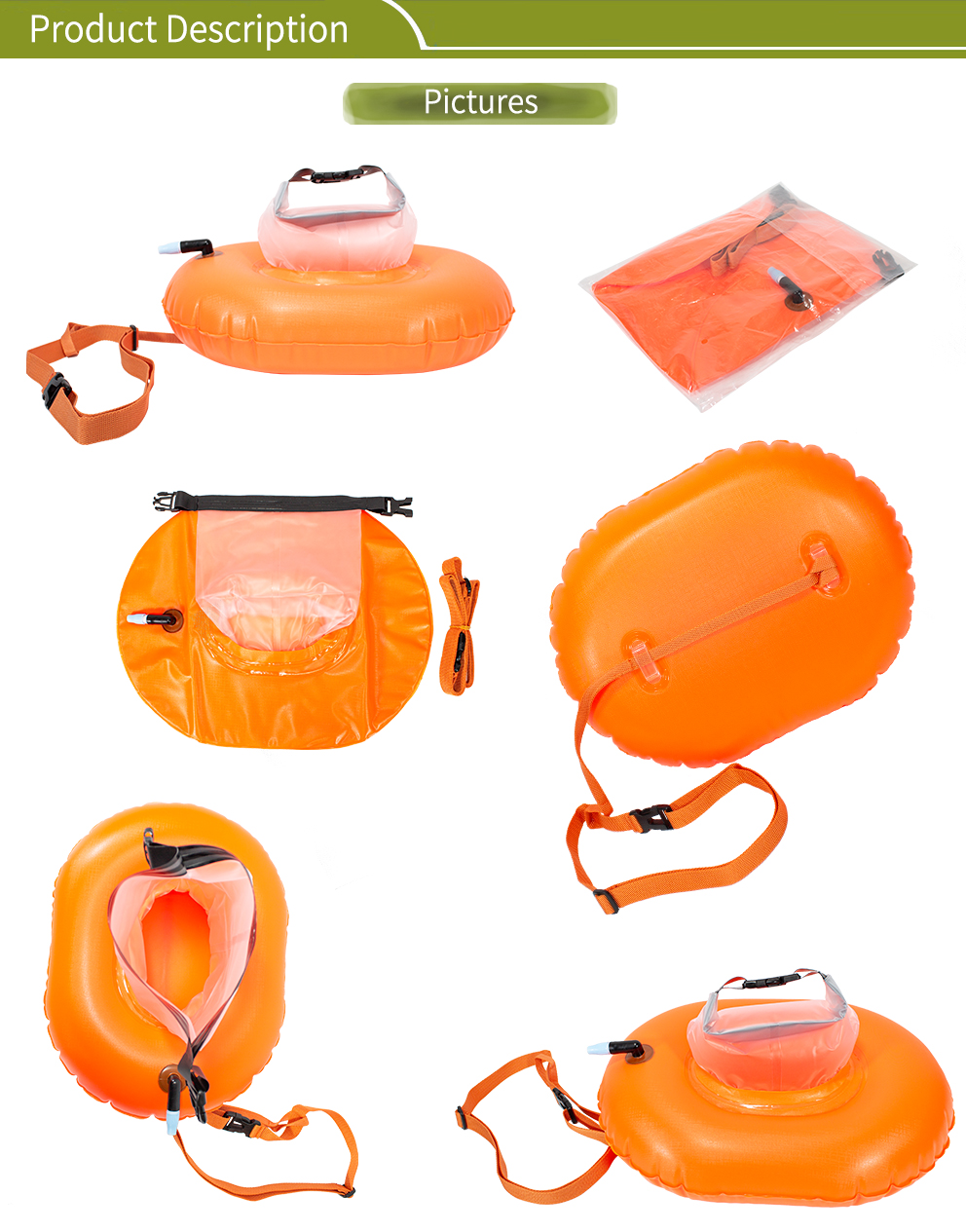 - The mesh pocket is optional and other functional decorations can also be customized on the swim buoy. The LED strip is also available for other swim buoy models. We also accept manufacturing with our client’s customized design.